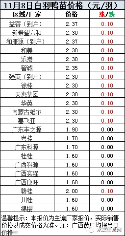 明日白鸭苗,北方、江西继续拉涨报价上涨0.1元/羽。南方市场支撑不足报稳调整。