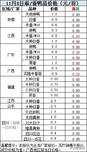 二、11月8日 麻鸭苗、半番鸭苗报价;