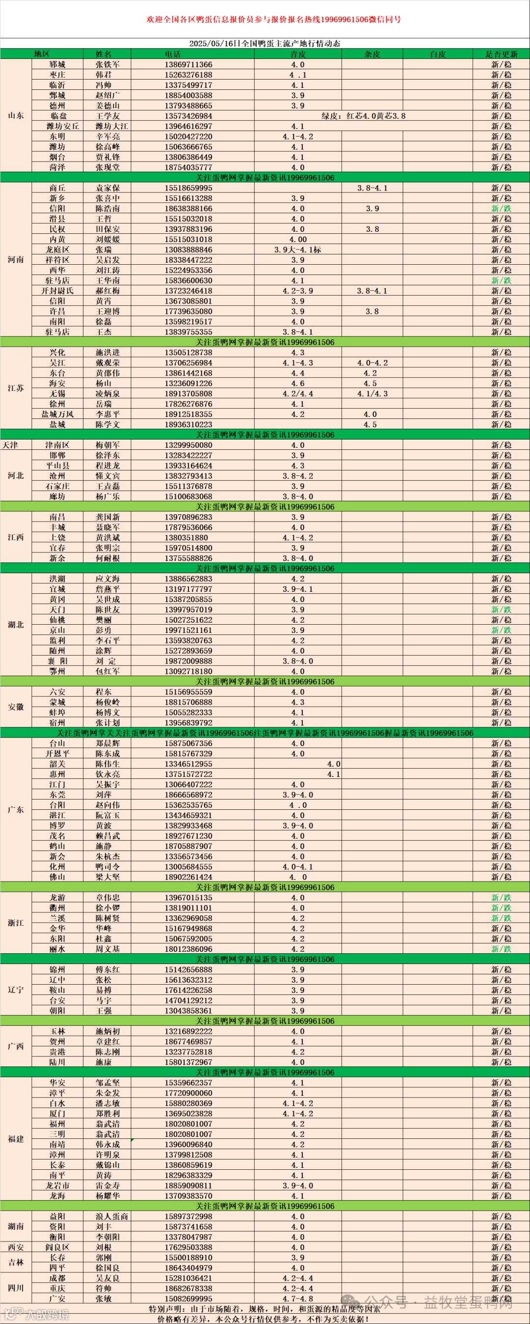 2025年5月16日商品鸭蛋报价 益牧堂水禽信息