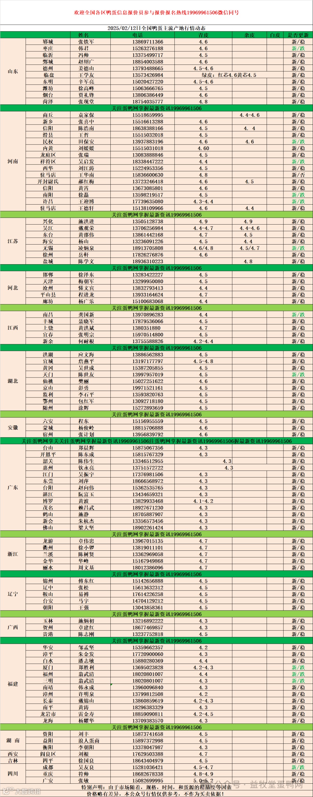 2025年2月12日商品鸭蛋报价 益牧堂水禽信息