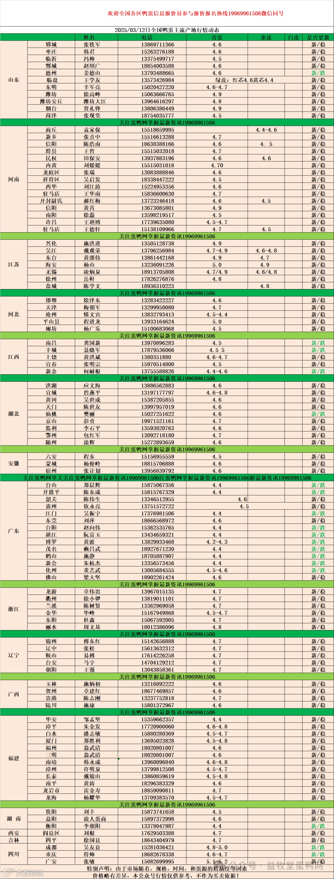 2025年3月12日商品鸭蛋报价 益牧堂水禽信息