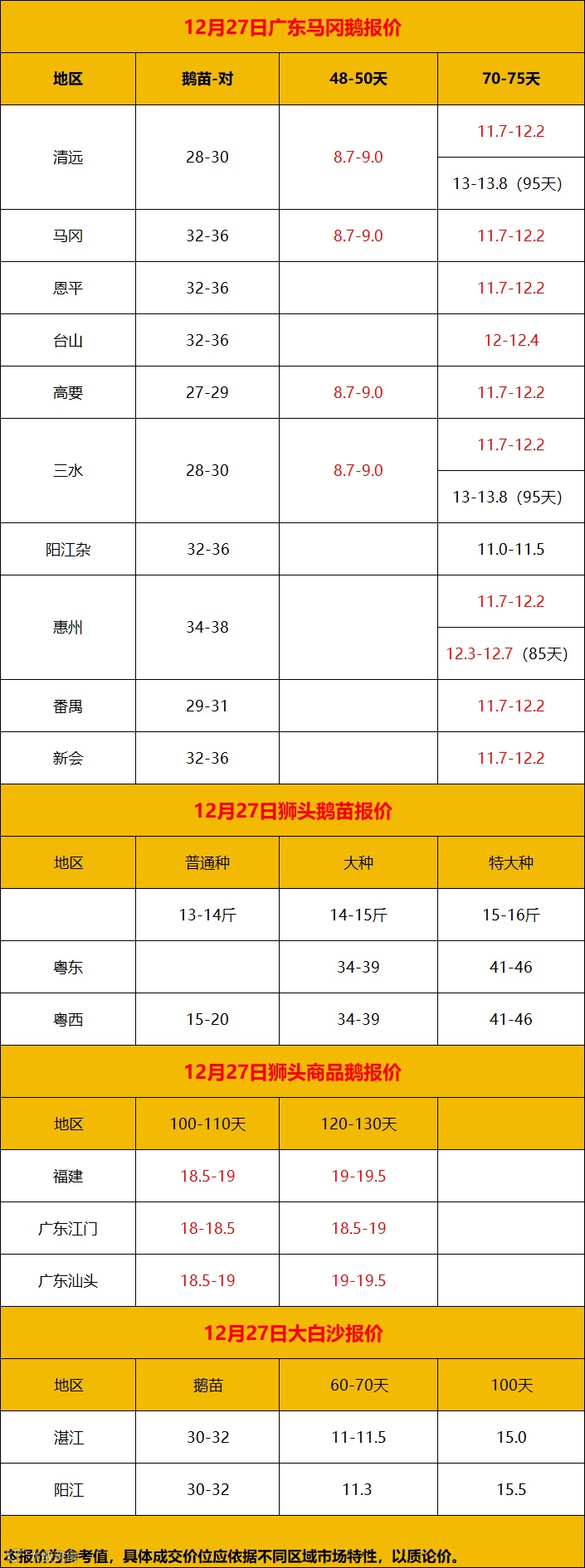 2024年12月28日鹅价快报