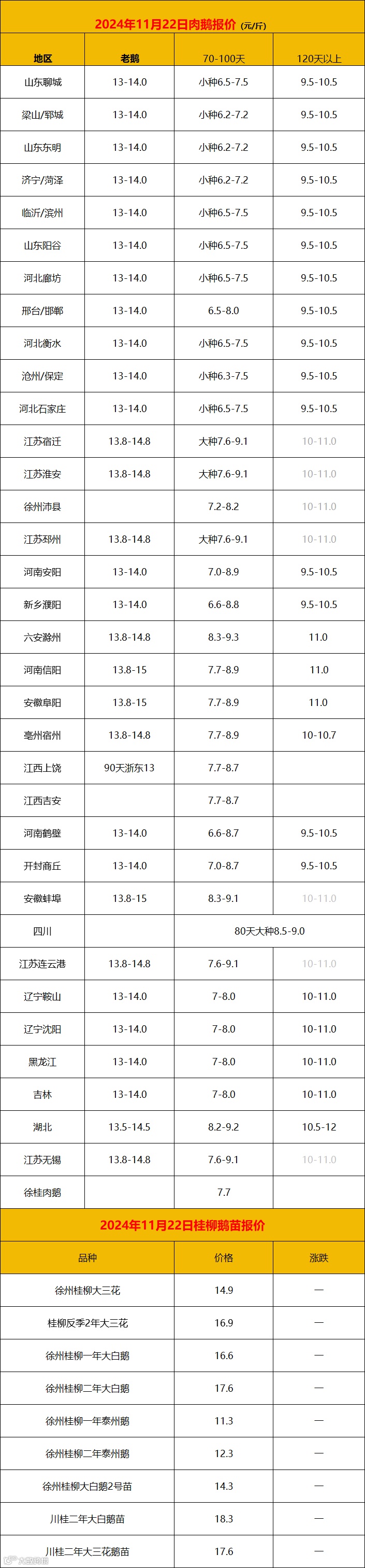 2024年11月22日鹅价快报