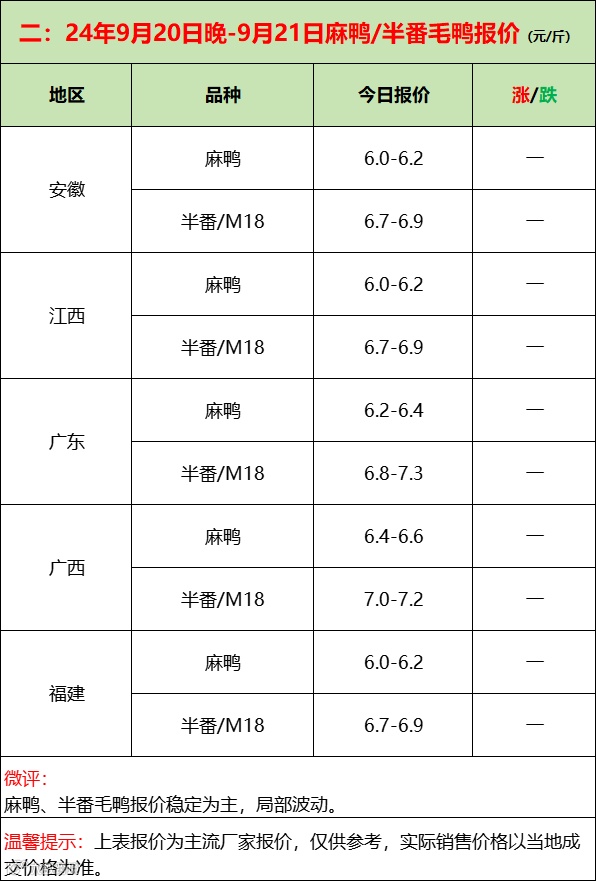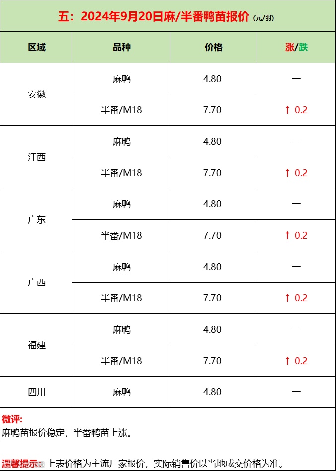 苗蛋趁势上涨,博弈激烈,最终还看各自盈利能力!--2024年9月20日水禽行情简报