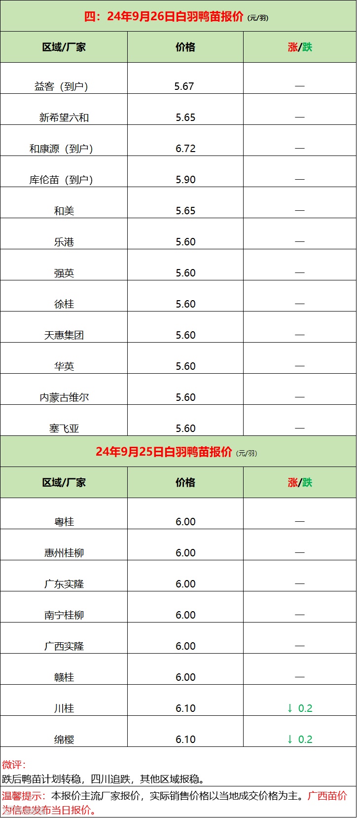 鸭苗落后走稳,毛鸭偏弱阴跌,行业结构性矛盾突出!--2024年9月26日水禽行情简报 益牧堂水禽信息