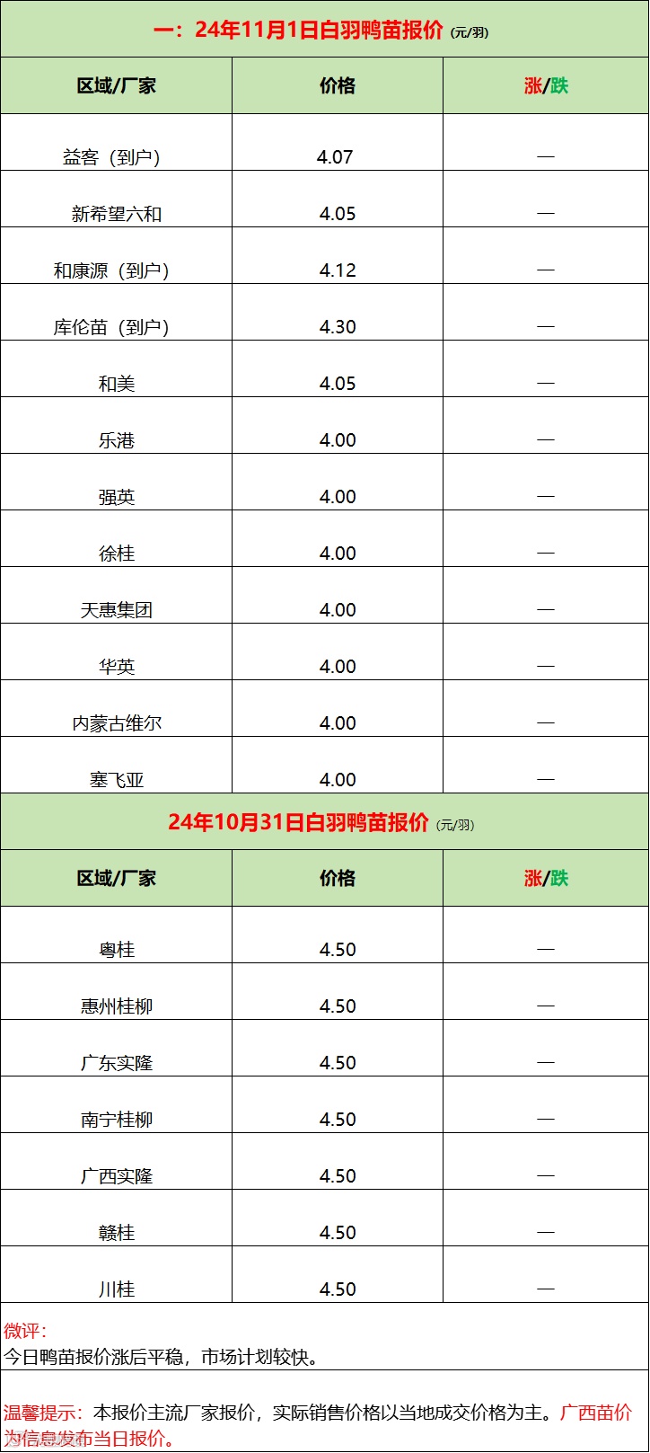 导读:鸭苗报稳,限价博弈激烈;产品弱稳,促走货有议价!