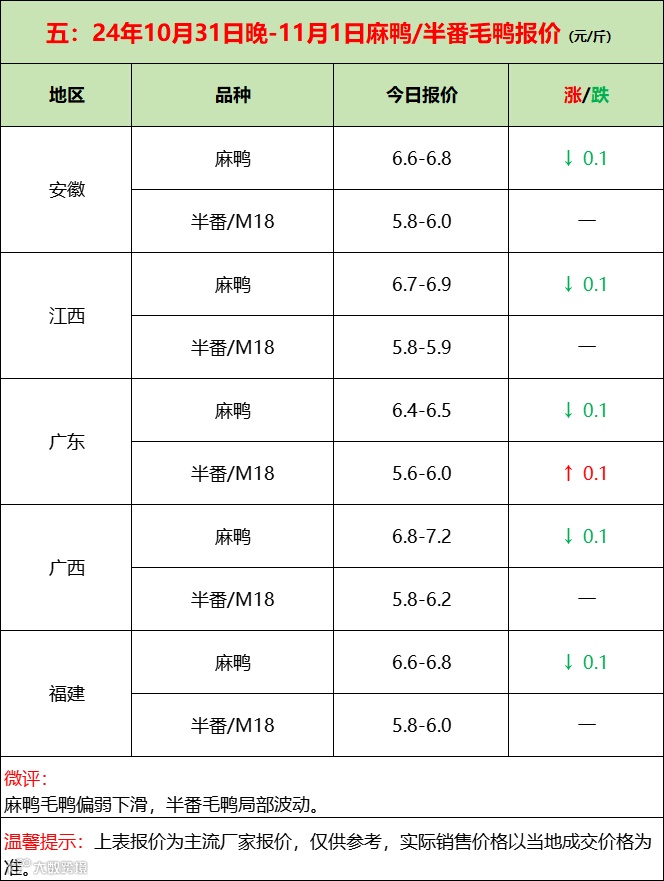 产品亏损加深,高成本只是表象,低效率是真难点!--2024年11月1日水禽行情简报 益牧堂水禽信息