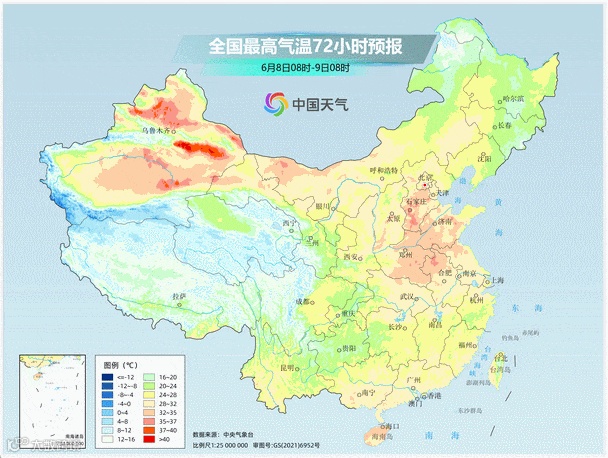中央气象台预计,8日至14日,华北大部、黄淮、陕西关中、新疆北部和东部、内蒙古中西部等地高温日数普遍有5至7天,日最高气温可达35至38℃。