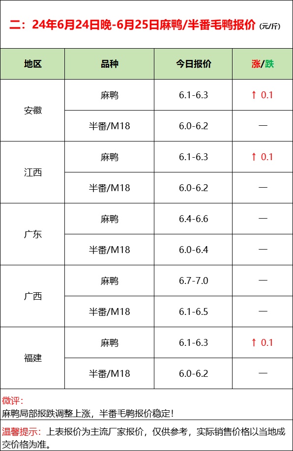 鸭苗北涨南跌波动调整,产品底部挣扎零星下滑;--2024年6月25日水禽行情简报 益牧堂水禽信息