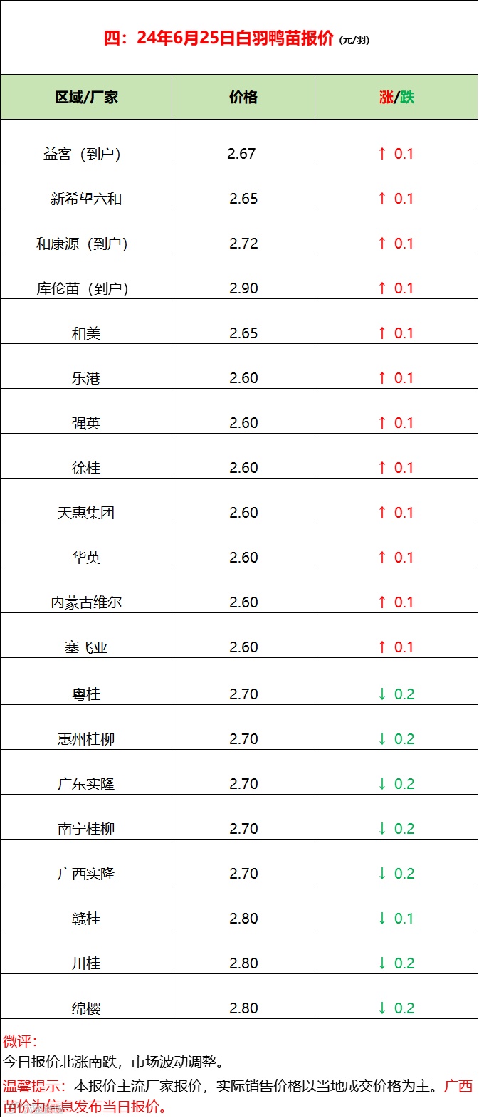 鸭苗北涨南跌波动调整,产品底部挣扎零星下滑;--2024年6月25日水禽行情简报