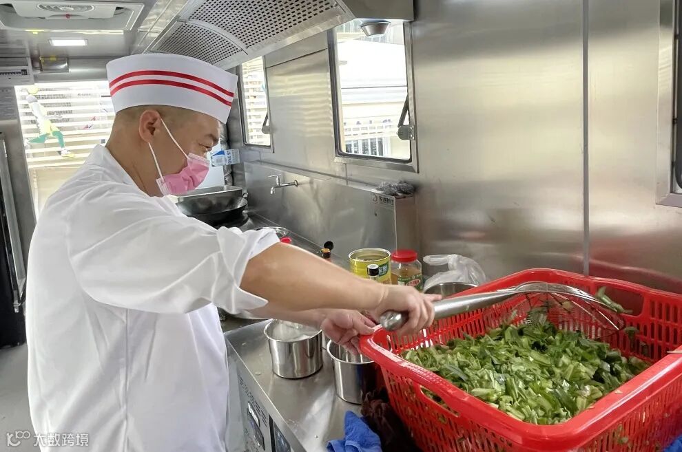餐车厨师每日验收深铁食堂输送的净菜食材后