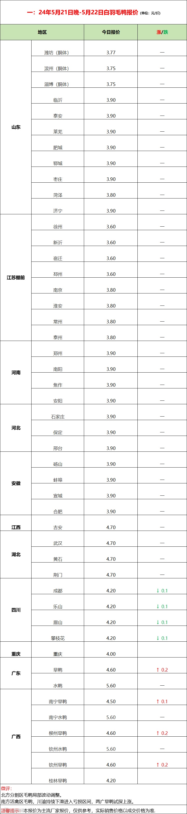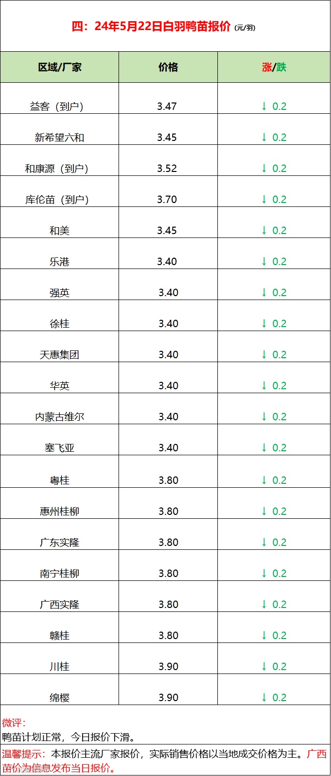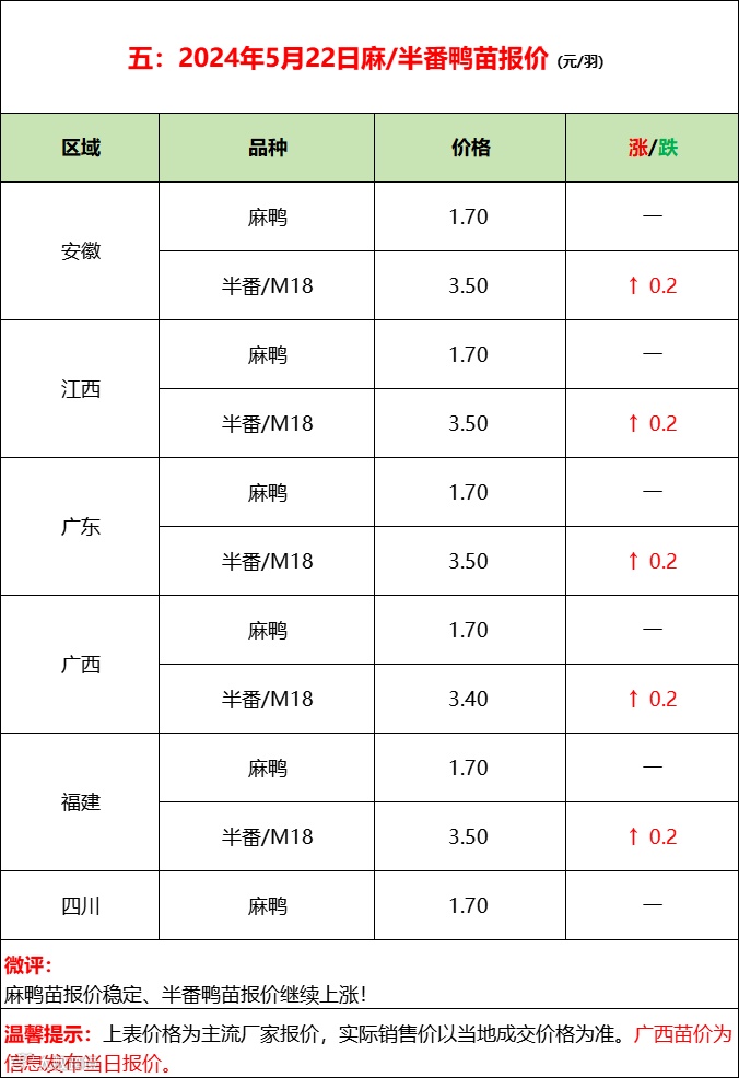 2024年5月22日水禽行情简报 益牧堂水禽信息