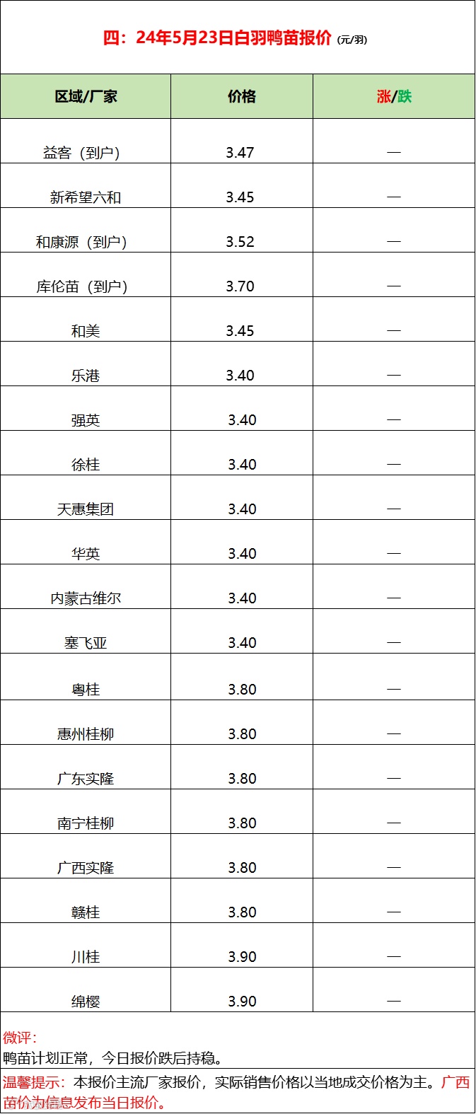 2024年5月23日水禽行情简报 益牧堂水禽信息