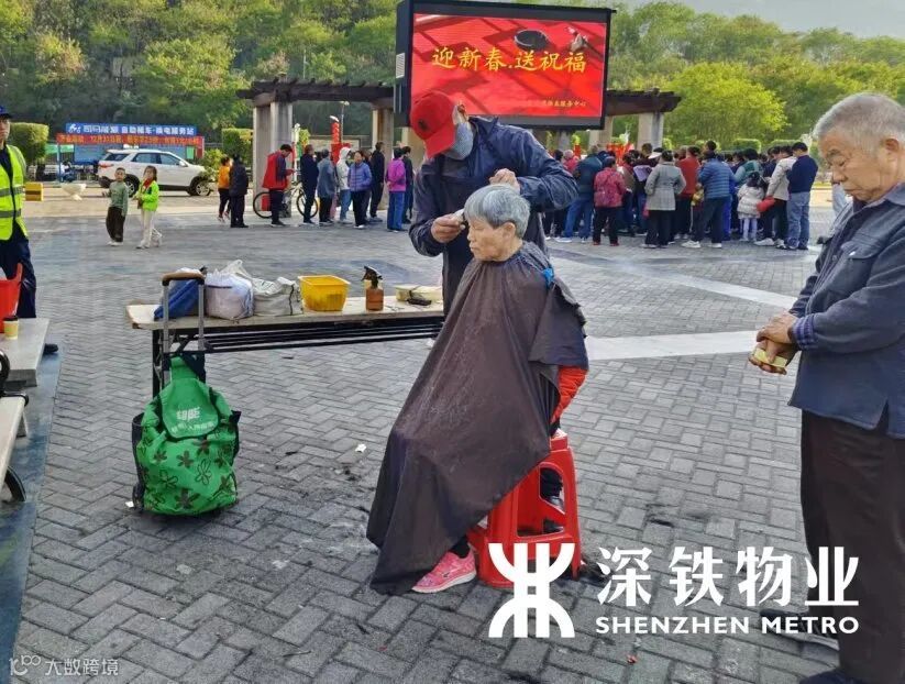 专业老师傅动作娴熟地为居民修剪头发