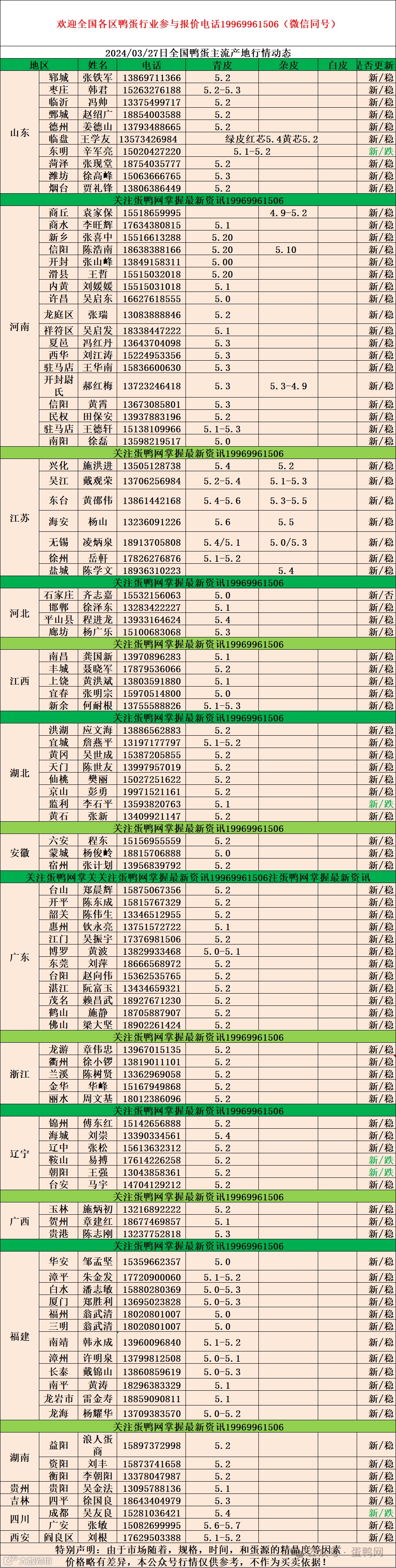 2024年3月27日商品鸭蛋报价