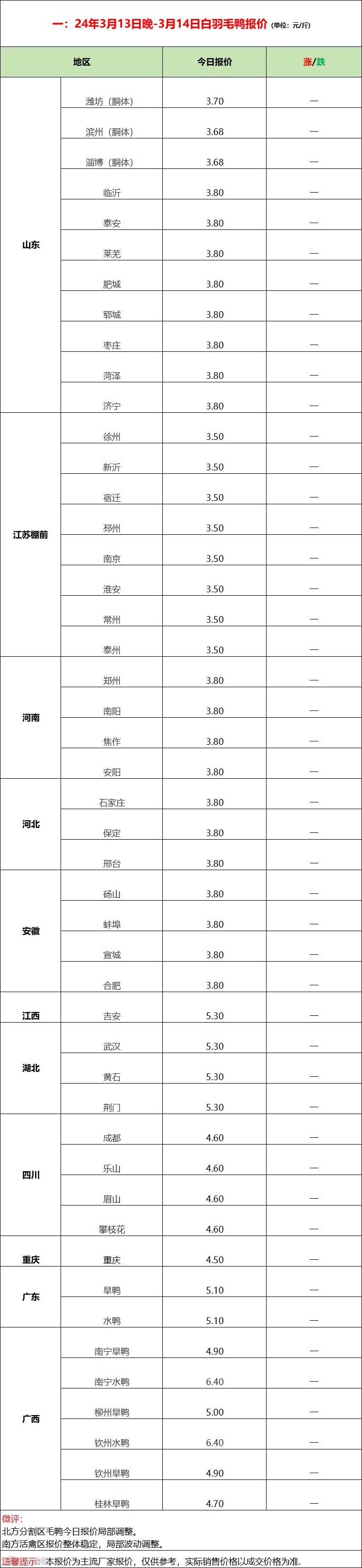 南方活禽区毛鸭报价整体稳定调整中,供需矛盾突出,区域差异化进一步拉大。