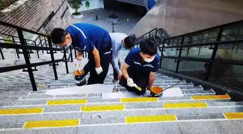 看!阶梯上被刷上一层层荧光漆
