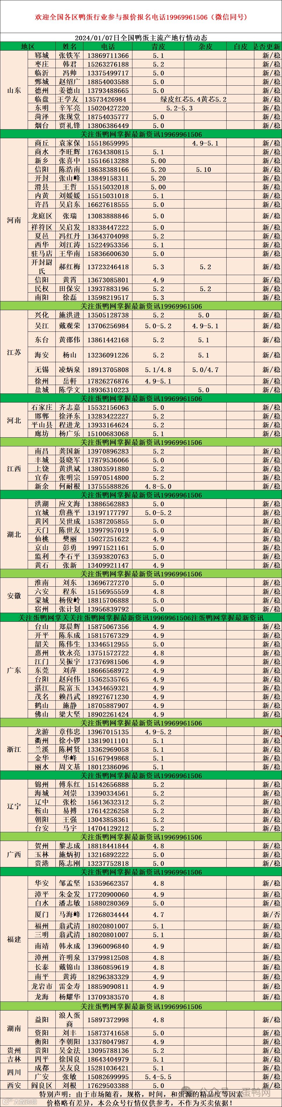 2024年1月7日商品鸭蛋报价