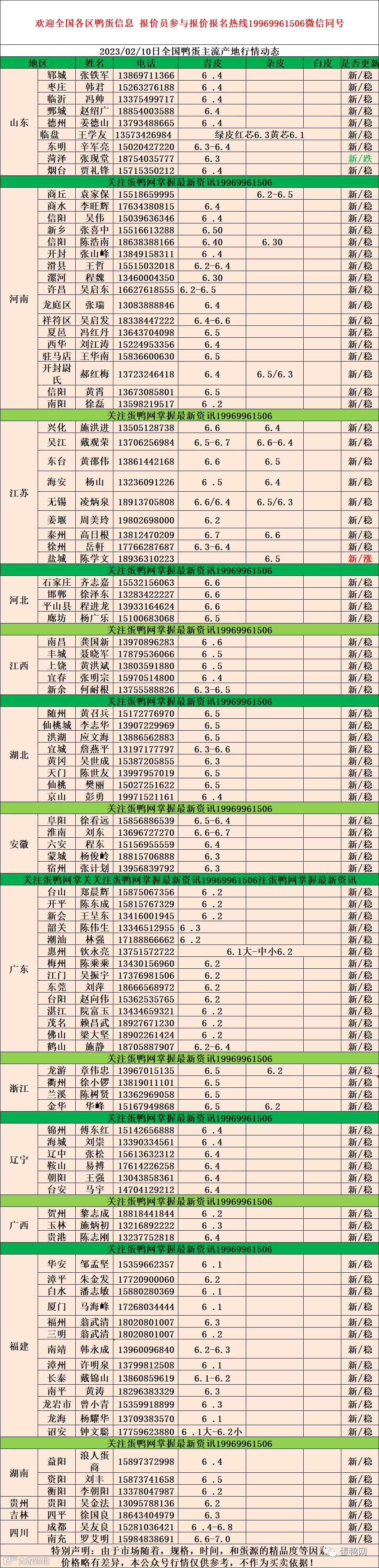 2023年02月10日:初产至10个头5.9元,10个头至9个头6.0元,9个头至8个头6.1元,8个头至7.5个头6.2,7.5个头至大蛋6.4元。