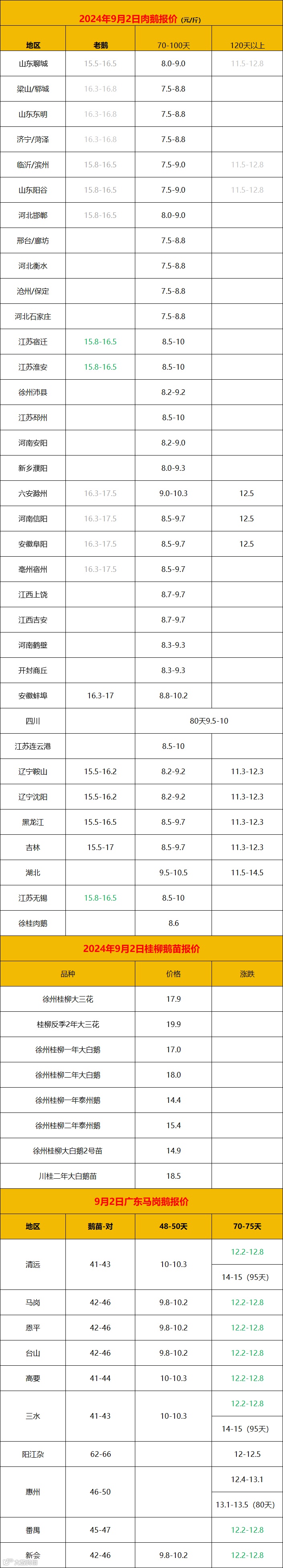 2024年9月2日鹅价快报