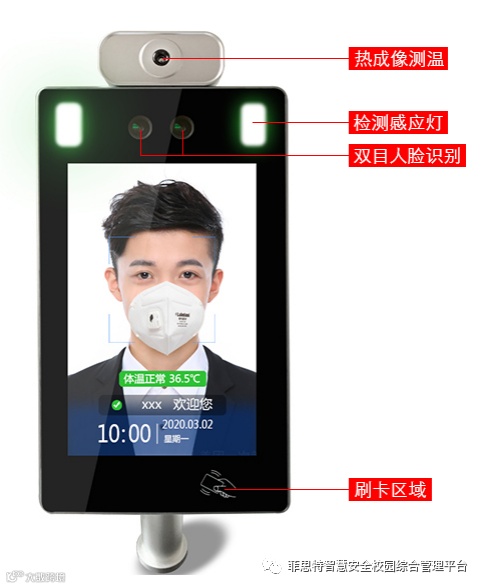 红白绿三色灯,红灯定义认证不成功,温度异常报警,绿灯定义为认证成功,温度正常,白灯定义正常补光 |