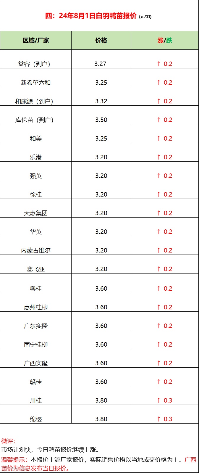 高温暴雨减产,鸭苗连续上涨;--2024年8月1日水禽行情简报 益牧堂水禽信息