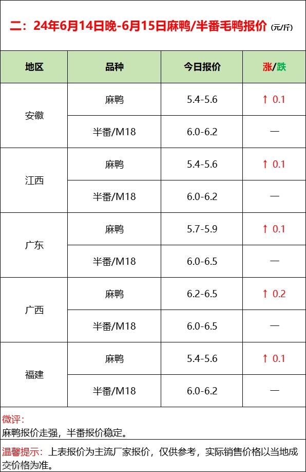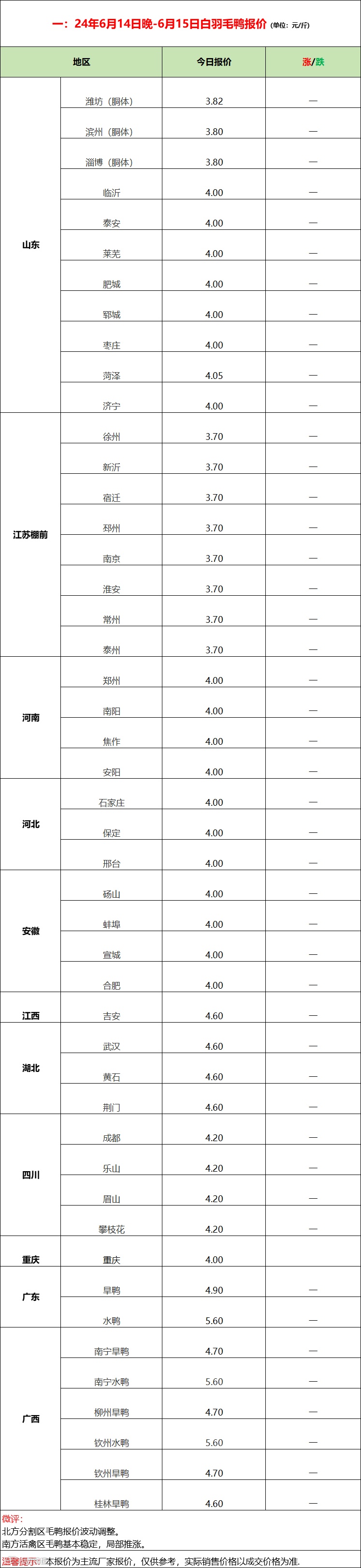 2024年6月15日水禽行情简报 益牧堂水禽信息