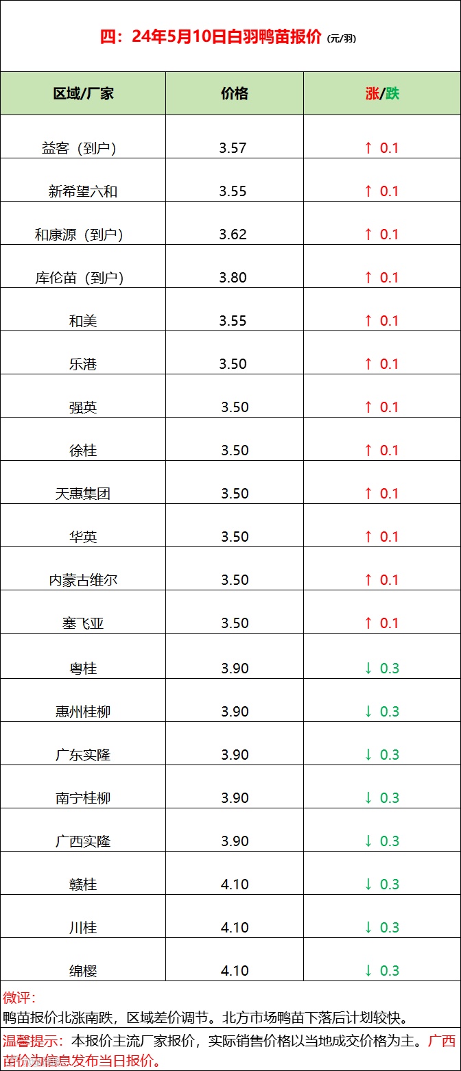 2024年5月10日水禽行情简报 益牧堂水禽信息