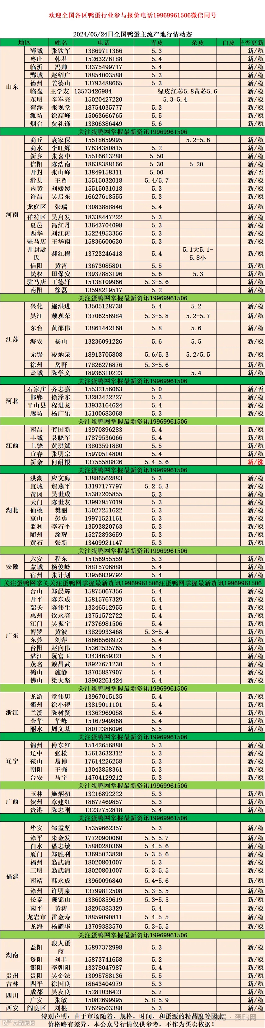 2024年5月24日商品鸭蛋报价