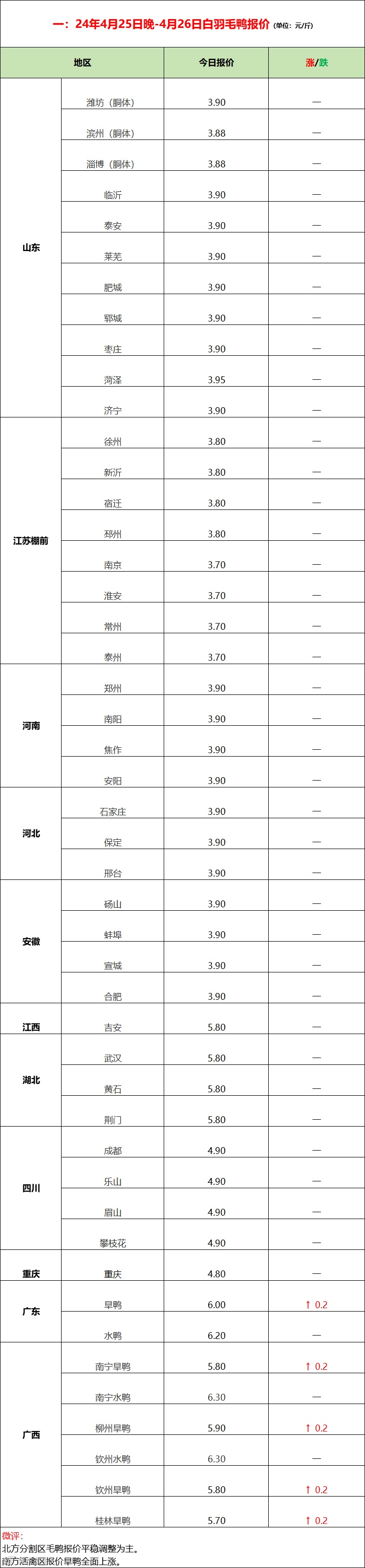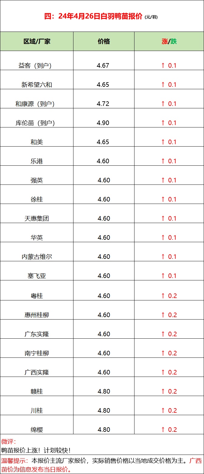 2024年4月26日水禽行情简报 益牧堂水禽信息