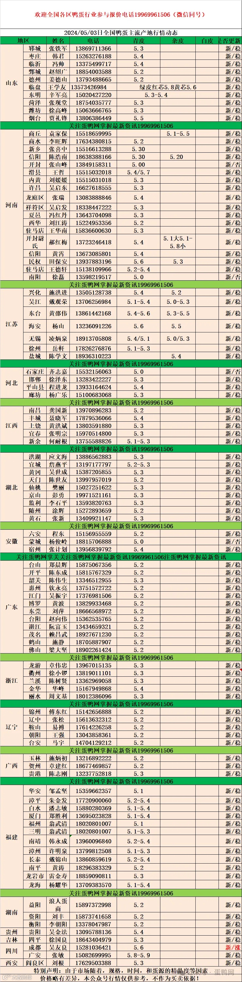 2024年5月3日商品鸭蛋报价