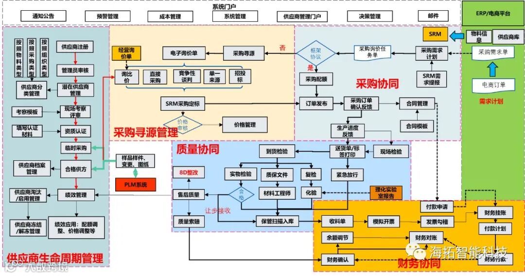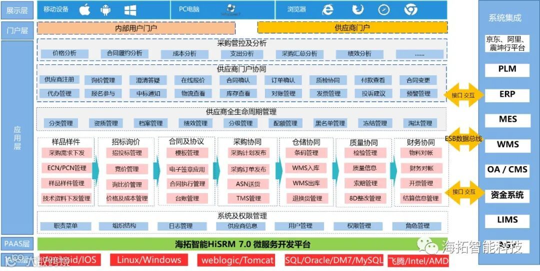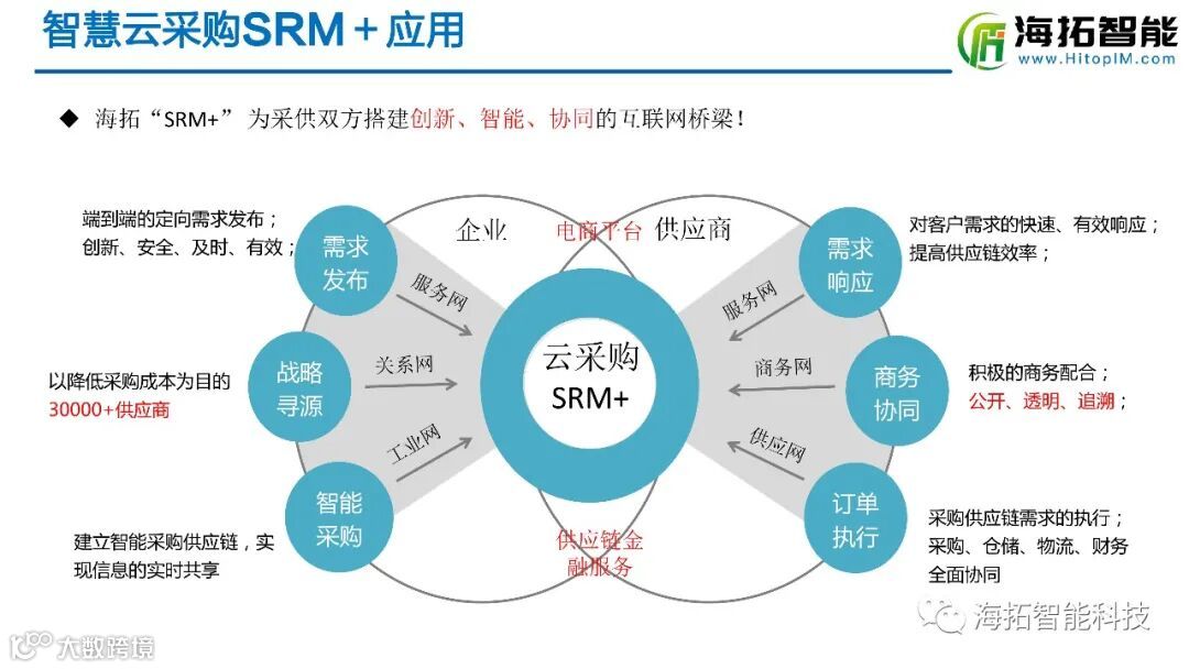 目前HiSRM7.0系统功能已涵盖企业设计研发、采购、生产、售后、仓储物流、财务、质量各过程,实现了供应商全生命周期管理、全方位的采购协同、实现企业与供应商之间的互联互通。