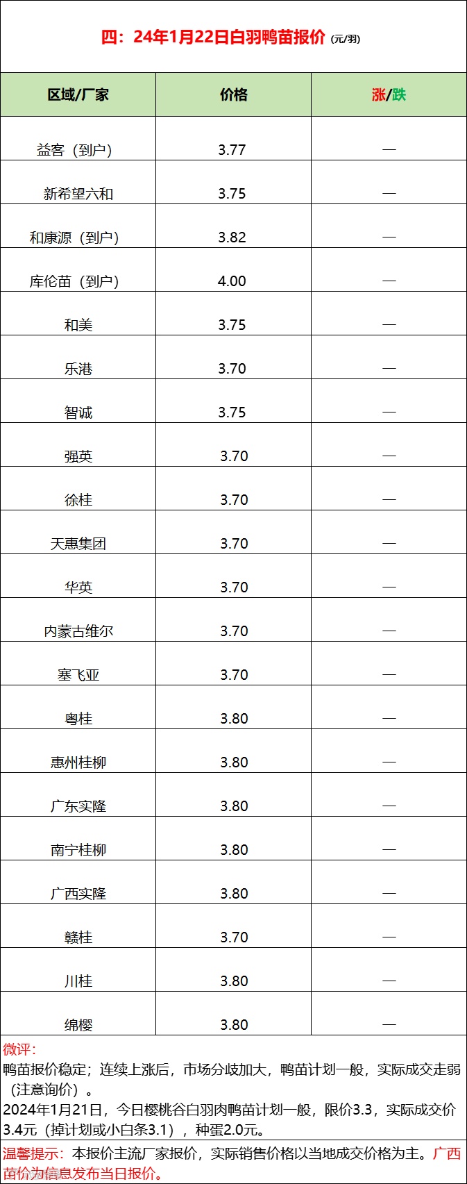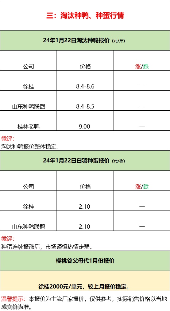 今日鸭苗报稳,实际成交变弱,种蛋报价连续下调。价位逐步走高,市场情绪分歧加大,行情博弈涨后调整。