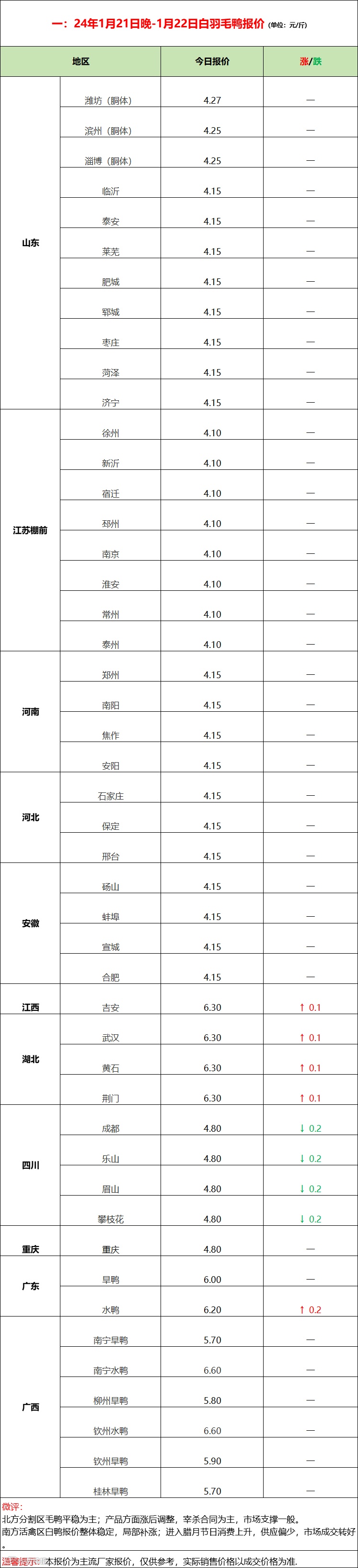 北方分割区毛鸭平稳为主,产品努力推涨但走势放缓,毛鸭市场收购量较小,以宰杀合同为主。