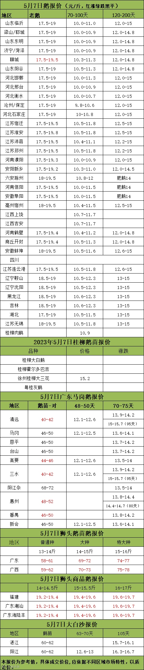 2023年5月07日各品种鹅苗价格