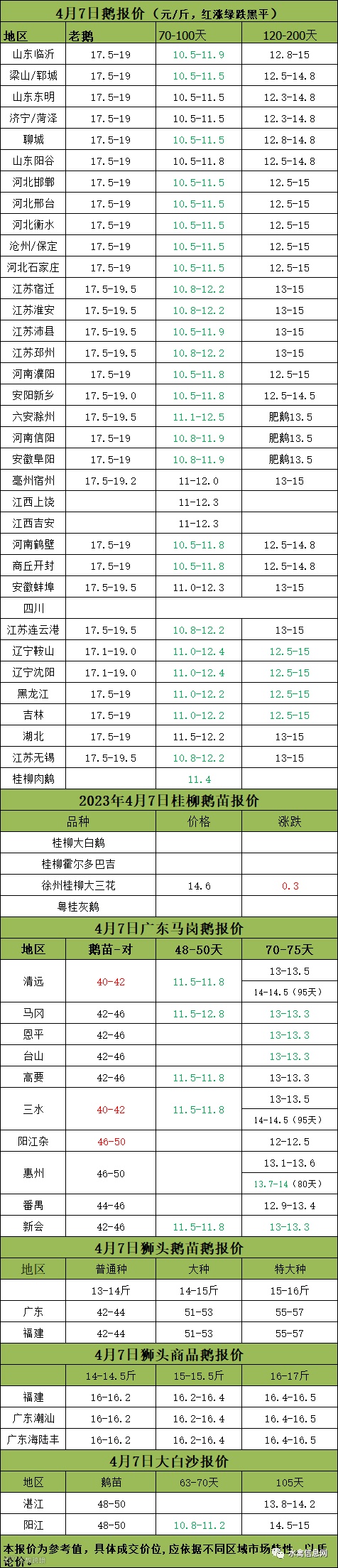 2023年4月07日鹅种蛋价格(元/枚)部分停报