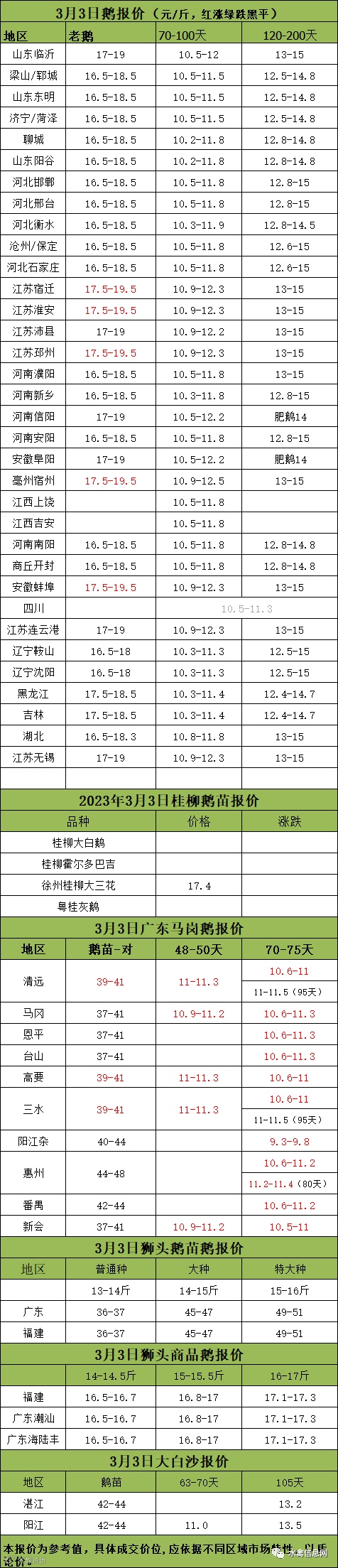 2023年3月03日鹅种蛋价格(元/枚)部分停报