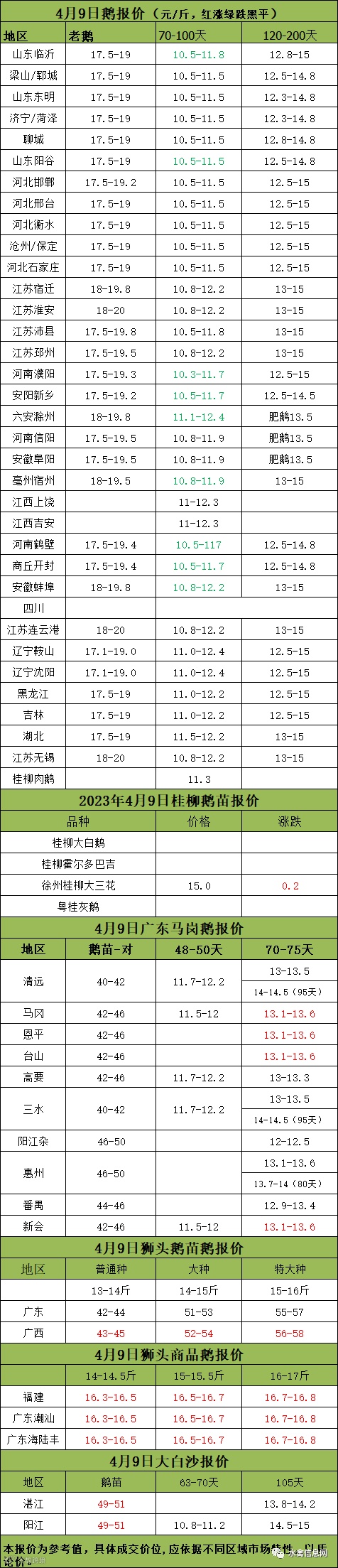 2023年4月09日各品种鹅苗价格