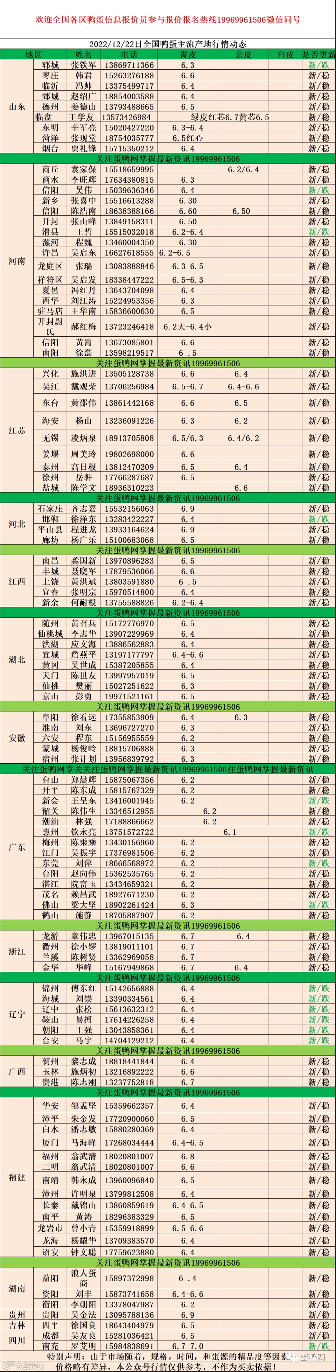 2022年12月22日鸭蛋报价