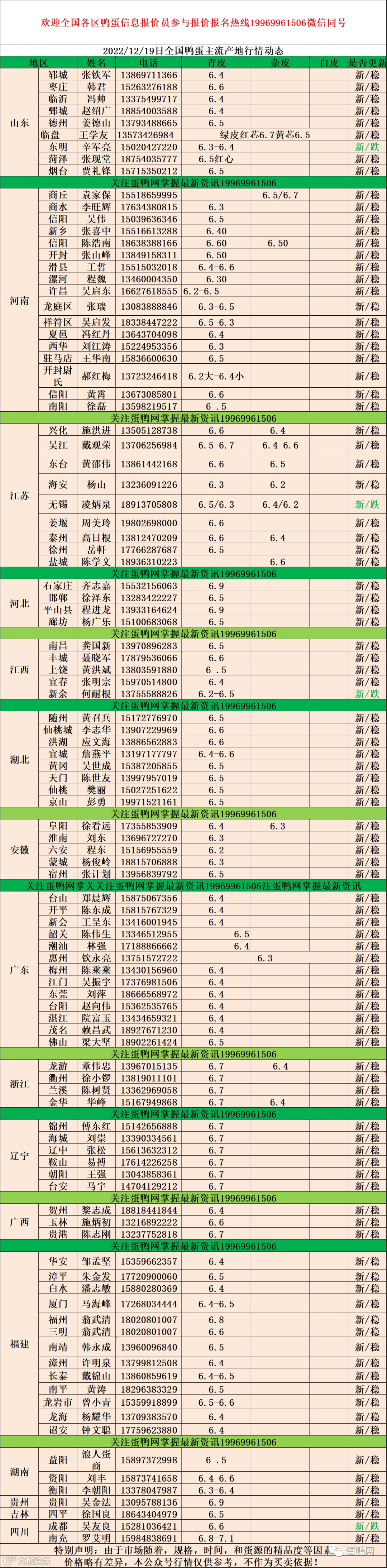2022年12月19日鸭蛋报价