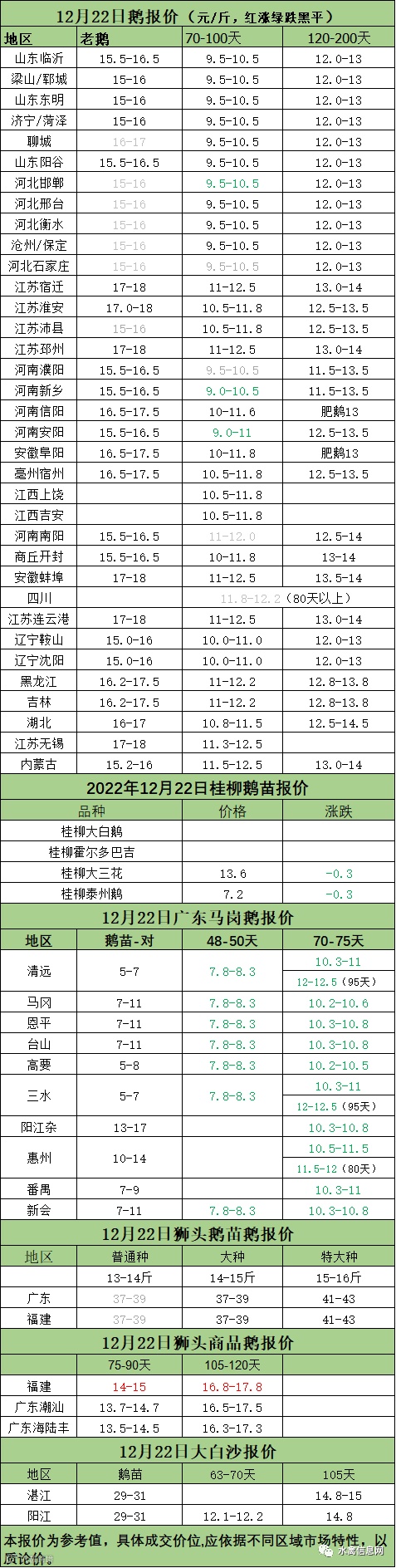 2022年12月22日鹅种蛋价格(元/枚)部分停报