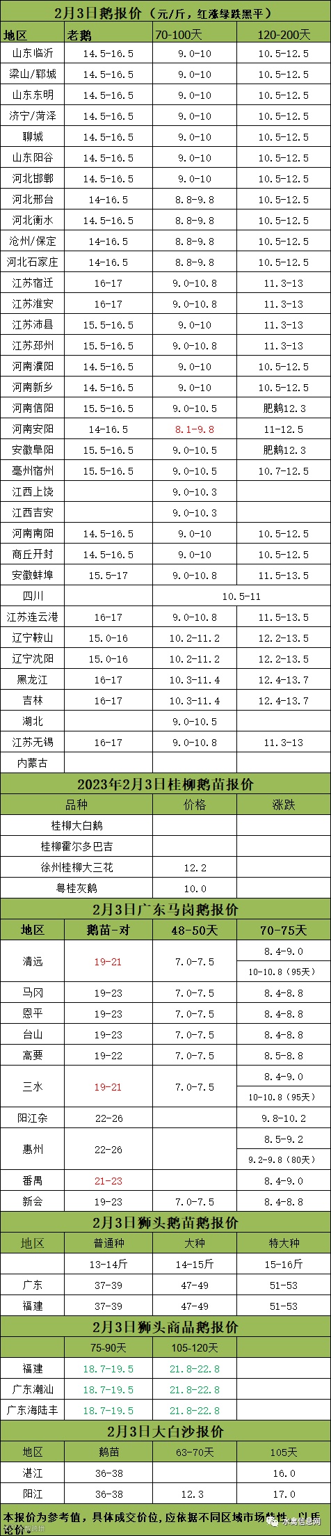 2023年2月03日各品种鹅苗价格