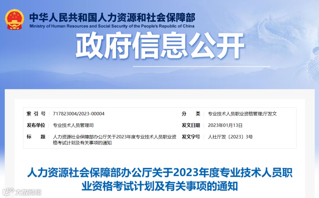近日,人力资源社会保障部办公厅印发《关于2023年度专业技术人员职业资格考试计划及有关事项的通知》,公布了2023年度专业技术人员职业资格考试工作计划。