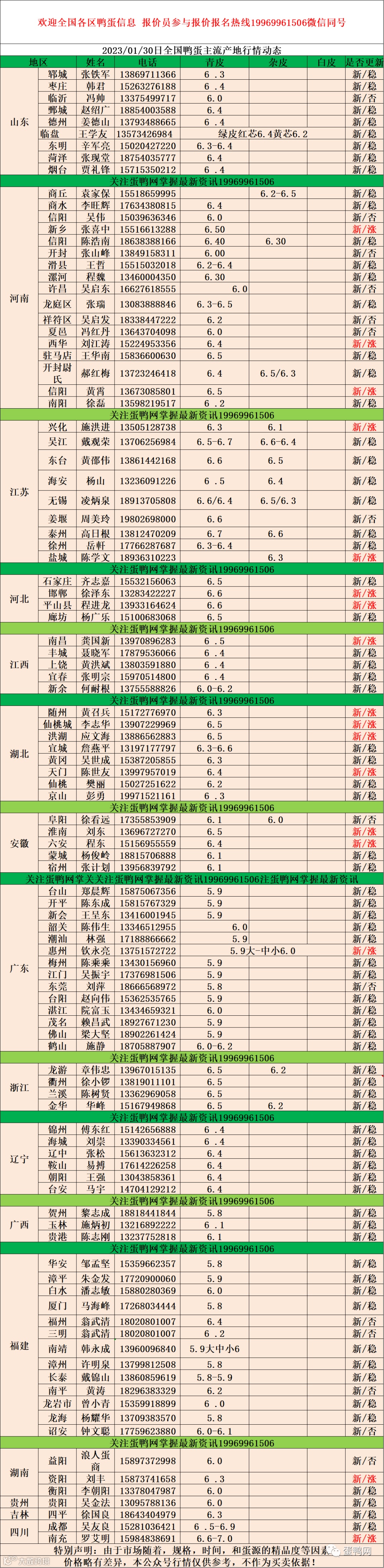 2023年1月30日鸭蛋报价