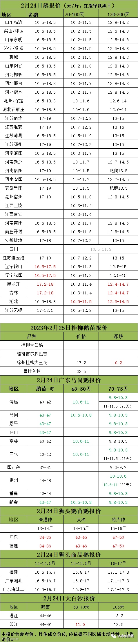 2023年2月24日鹅种蛋价格(元/枚)部分停报
