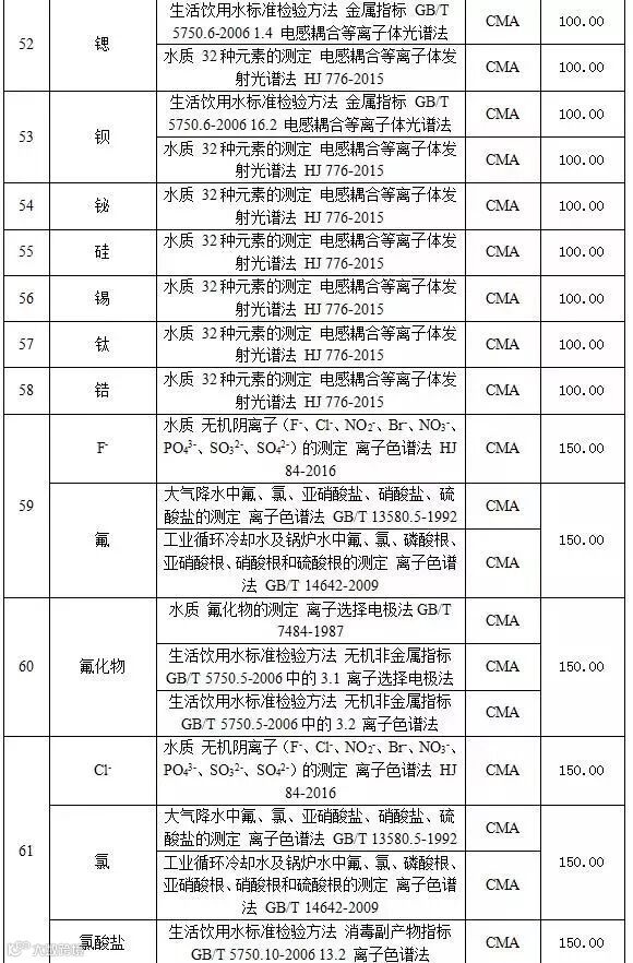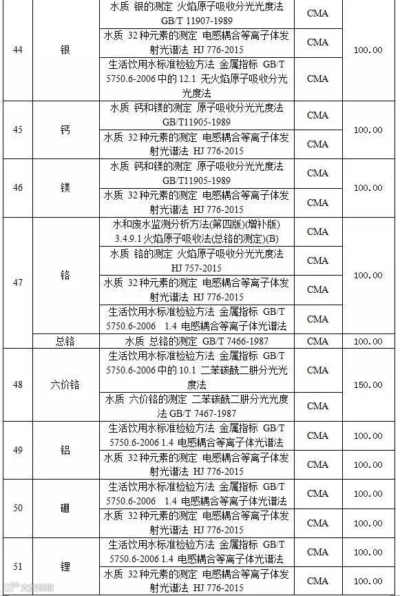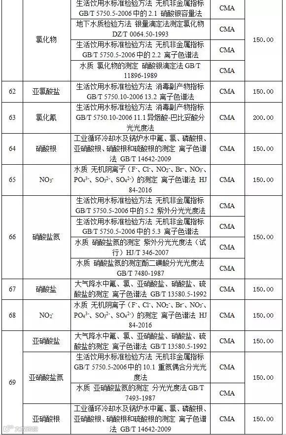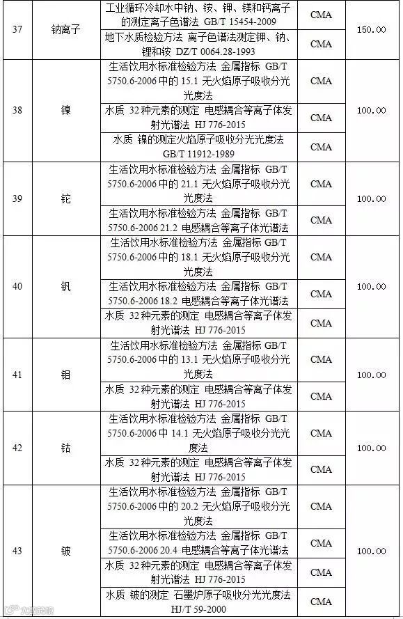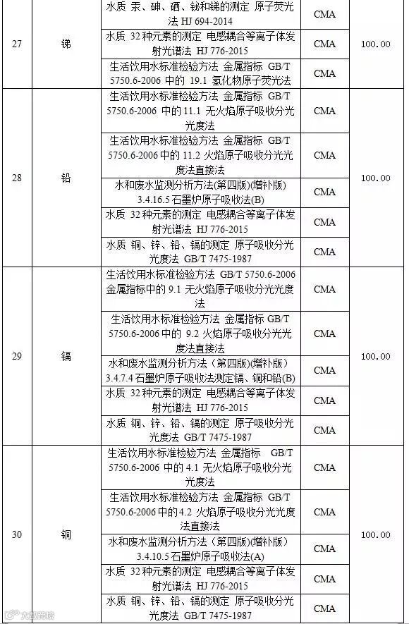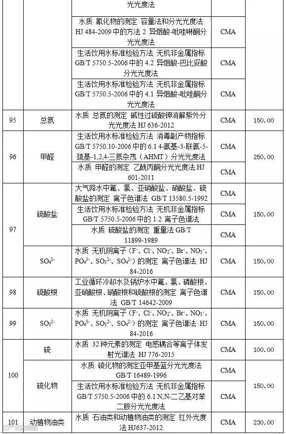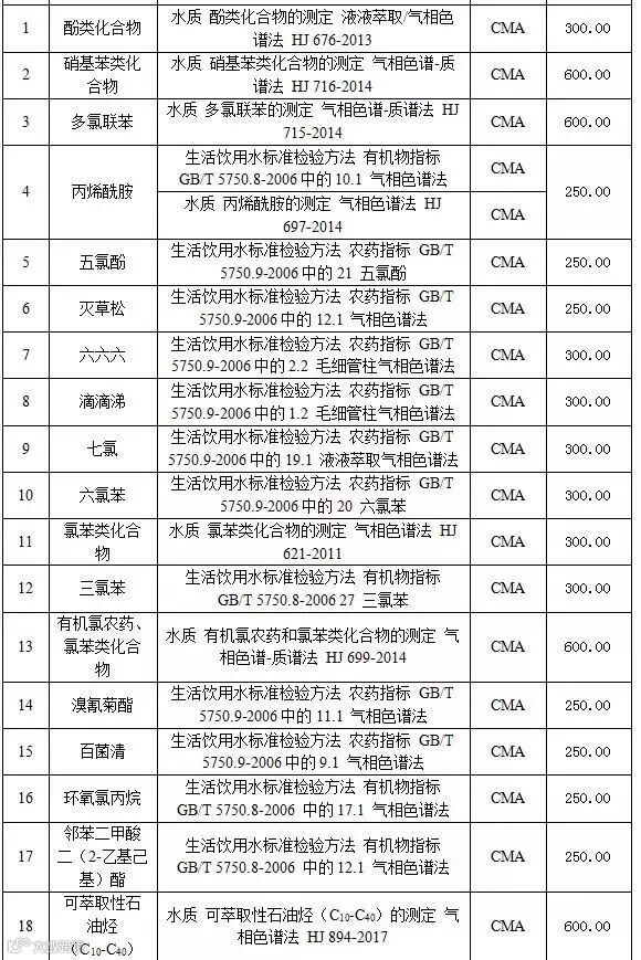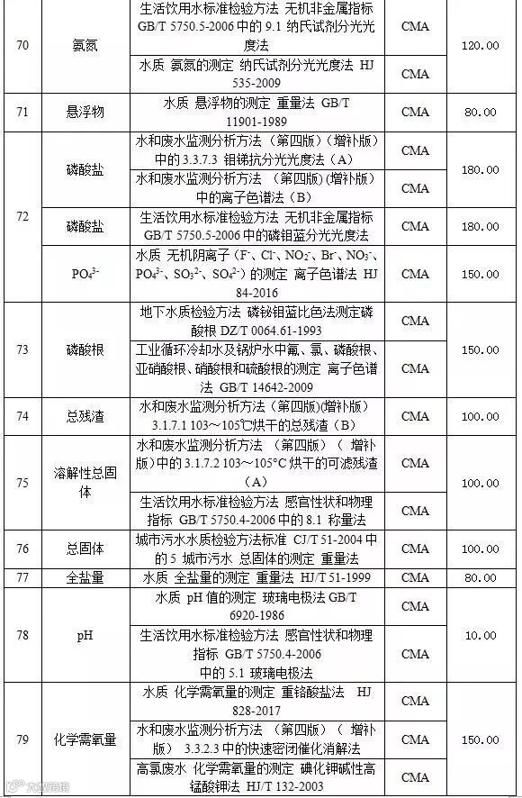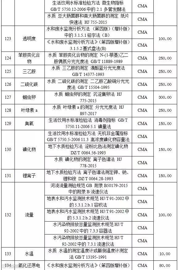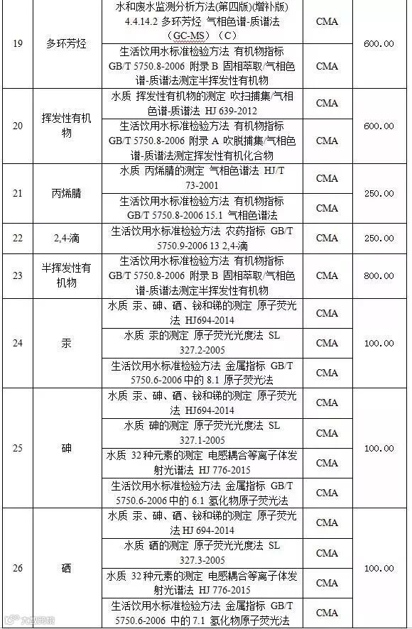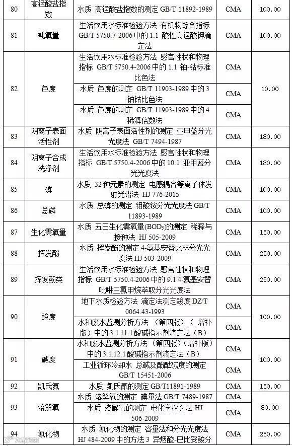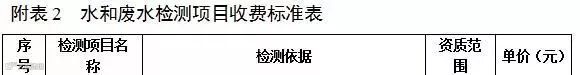 附表2 水和废水检测项目收费标准表