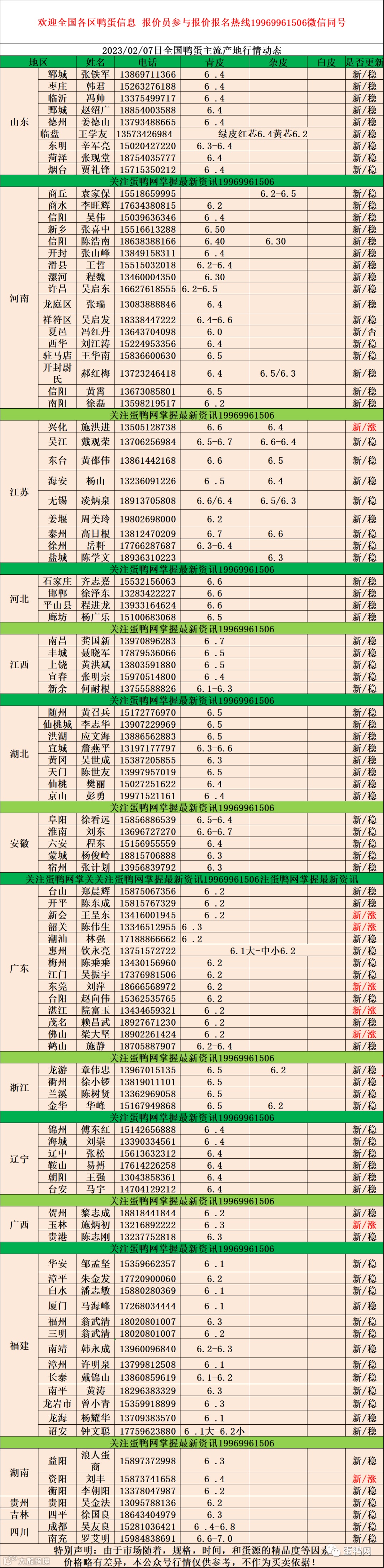 2023年2月7日鸭蛋报价