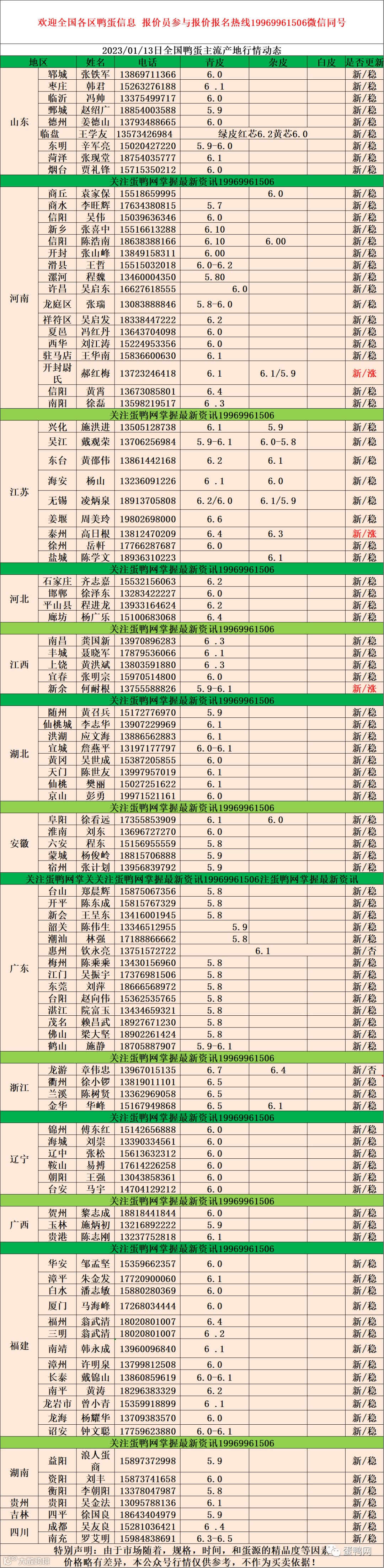 2023年1月13日:初产至10个头5.5元,10个头至9个头5.6元,9个头至8个头5.7元,8个头至7.5个头5.8,7.5个头至大蛋6.0元。
