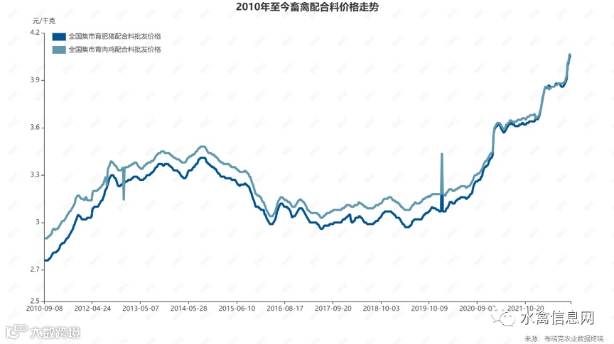 2010年至今畜禽配合料价格走势,图片: 布瑞克农业大数据