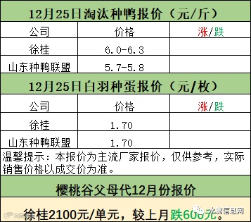 一、12月24日晚-12月25日白羽肉鸭报价;